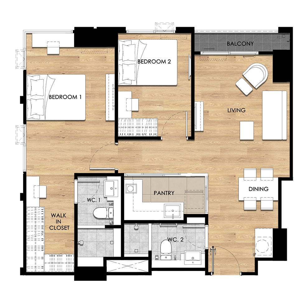 ONE BEDROOM 63.92 SQ.M.